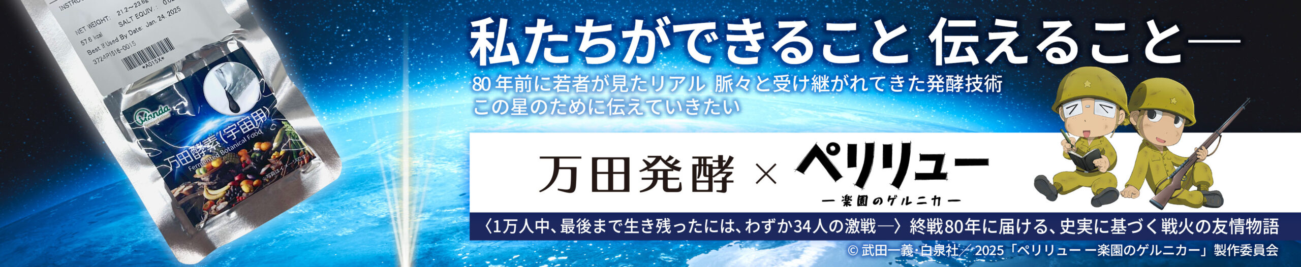 万田発酵株式会社(代表取締役社長:松浦良紀、所在地:広島県尾道市因島)は、歴史と技術を伝えていくことをテーマに、12月5日全国公開となる映画『ペリリュー ―楽園のゲルニカ―』とタイアップします。
